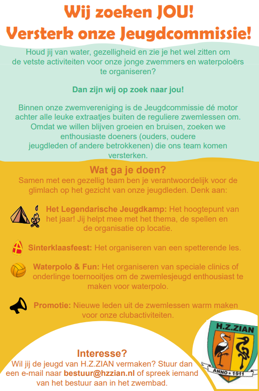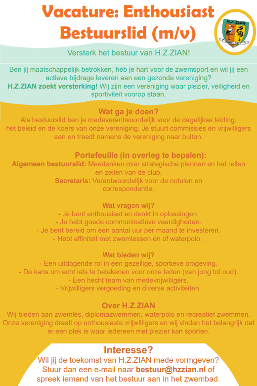 Ben jij de geschikte kandidaat mail dan naar zwemles@hzzian.nl