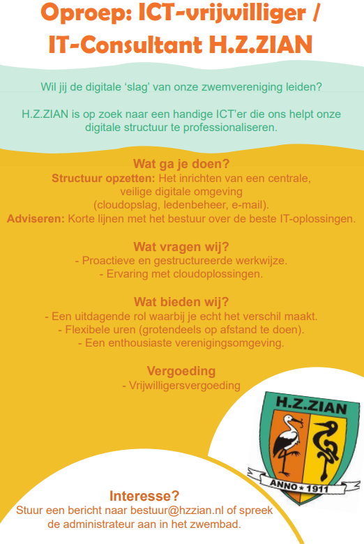 Ben jij de geschikte kandidaat mail dan naar bestuur@hzzian.nl